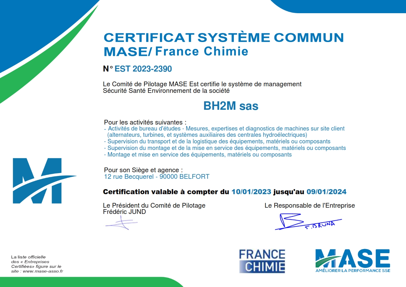 En se conformant strictement aux exigences MASE, BH2M garantit la sécurité de ses opérations pour l'entière satisfaction de ses clients.